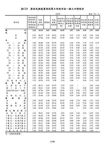 表C23 原住民族就業者找尋工作的方法-按人口特性分