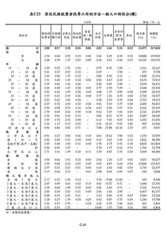 表C23 原住民族就業者找尋工作的方法-按人口特性分(續)