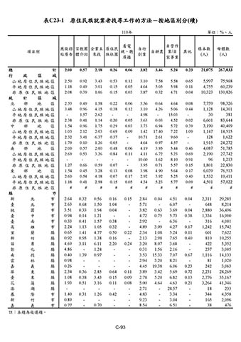 表C23-1 原住民族就業者找尋工作的方法-按地區別分(續)