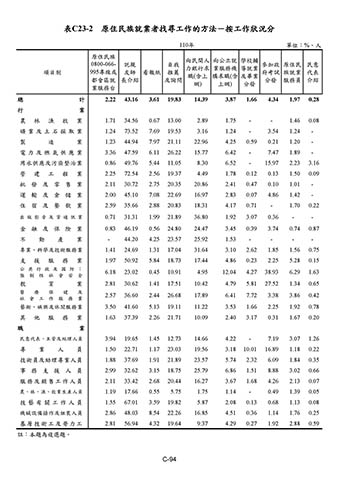 表C23-2 原住民族就業者找尋工作的方法-按工作狀況分