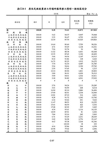 表C24-1 原住民族就業者工作場所僱用移工情形-按地區別分