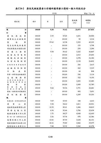 表C24-2 原住民族就業者工作場所僱用移工情形-按工作狀況分