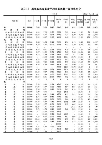 表D1-1 原住民族失業者平均失業週數-按地區別分