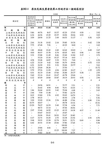 表D2-1 原住民族失業者找尋工作的方法-按地區別分