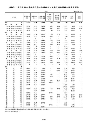 表D7-1 原住民族失業者在找尋工作過程中,主要遭遇的困難-按地區別分