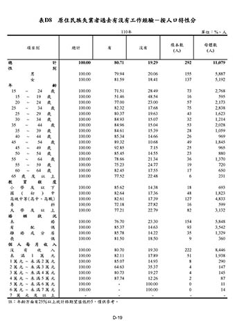 表D8 原住民族失業者過去有沒有工作經驗-按人口特性分