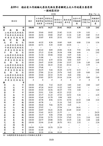 表D9-1 過去有工作經驗之原住民族失業者離開上次工作的最主要原因
