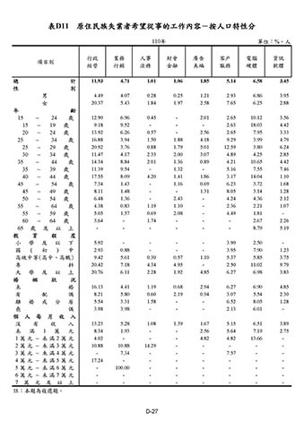 表D11 原住民族失業者希望從事的工作內容-按人口特性分