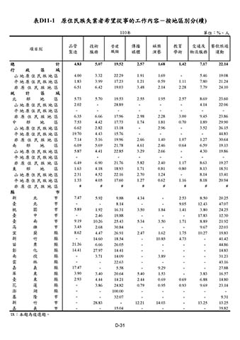 表D11-1 原住民族失業者希望從事的工作內容-按地區別分(續)
