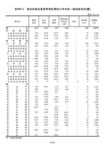 表D11-1 原住民族失業者希望從事的工作內容-按地區別分(續)