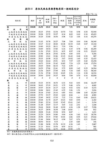 表E1-1 原住民族未參與勞動原因-按地區別分