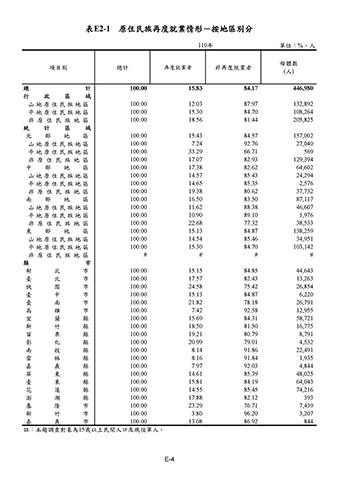 平 地 原 住 民 族 地 區 100.00 15.30 84.70 108,264