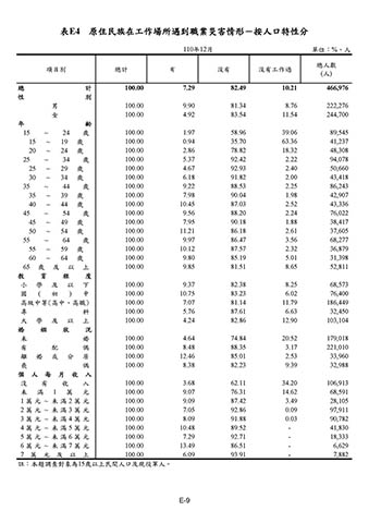 表E4 原住民族在工作場所遇到職業災害情形-按人口特性分