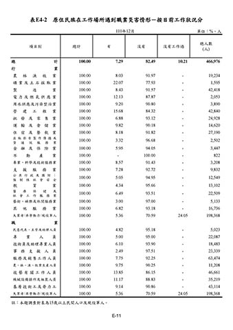 表E4-2 原住民族在工作場所遇到職業災害情形-按目前工作狀況分