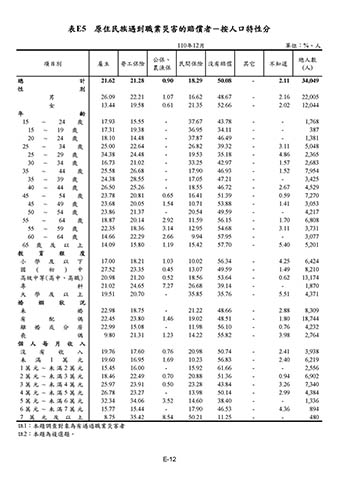 表E5 原住民族遇到職業災害的賠償者-按人口特性分