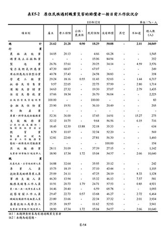 表E5-2 原住民族遇到職業災害的賠償者-按目前工作狀況分