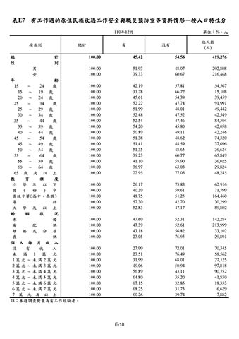 表E7 有工作過的原住民族收過工作安全與職災預防宣導資料情形-按人口特性分