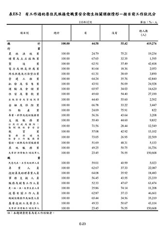 表E8-2 有工作過的原住民族接受職業安全衛生相關課程情形-按目前工作狀況分