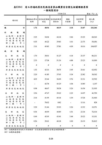 表E10-1 有工作過的原住民族沒有參加職業安全衛生相關課程原因