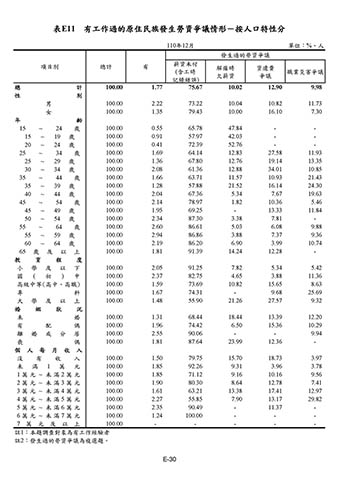 表E11 有工作過的原住民族發生勞資爭議情形-按人口特性分