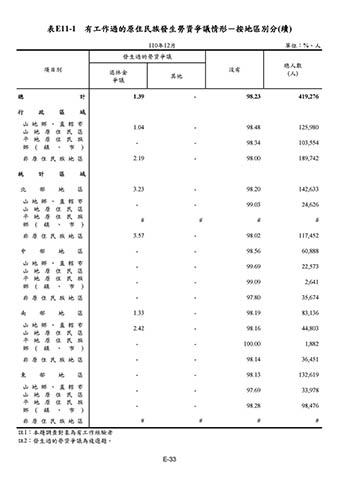 表E11-1 有工作過的原住民族發生勞資爭議情形-按地區別分(續)