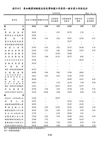 表E14-2 參加職業訓練後沒有從事相關工作原因-按目前工作狀況分