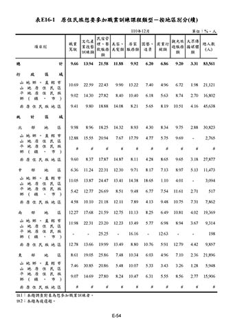 表E16-1 原住民族想要參加職業訓練課程類型-按地區別分(續)