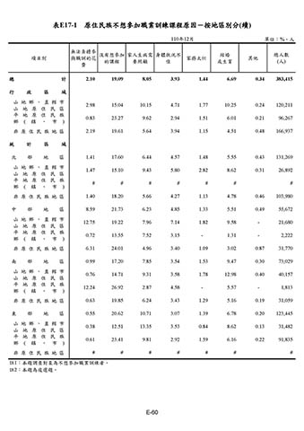 表E17-1 原住民族不想參加職業訓練課程原因-按地區別分(續)