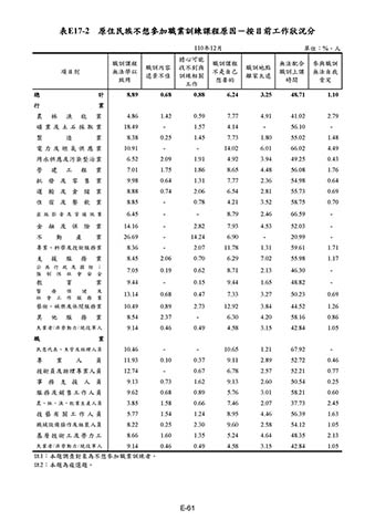 表E17-2 原住民族不想參加職業訓練課程原因-按目前工作狀況分