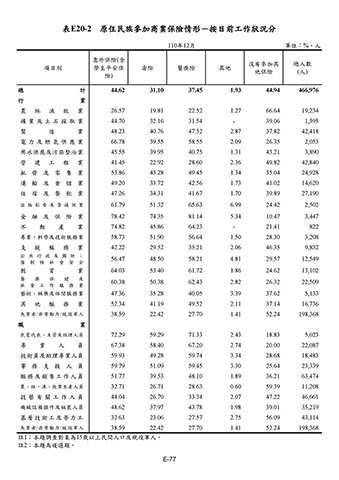 表E20-2 原住民族參加商業保險情形-按目前工作狀況分