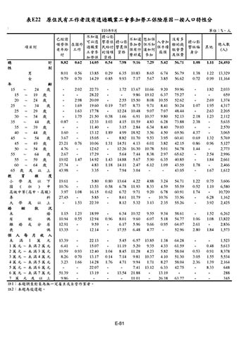 表E22 原住民有工作者沒有透過職業工會參加勞工保險原因-按人口特性分