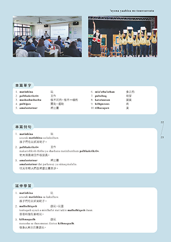 作企劃簡報、專案管理、師徒制一對一之族語教學機制 2. malhalhiqash 遊玩、玩耍