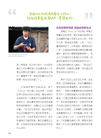 討原住民族式微文化過程,重拾族群的 研究所。他學習族語的方式是在部落打
