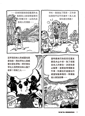 ……日本財團賀田組雇請外太 不料,竟發生了薪資、工作津 魯閣族人擔任樟腦寮的 貼發放不公平的事件!族人感 警備工作,以防內太 受到差別待遇! 魯閣人的侵擾…… 因不滿日本人對威里社過 當時最高行政長官花蓮支 度信任,西拉罕社人與威 廳長大山十郎,為了保護 里社發生爭執,終於西拉 日本人的安全,決定先廢 罕社人憤而對日本人腦丁 止腦寮,並親自帶領數臺 出草!砍殺二人…… 牛車,到達位於威里社的 威里製腦事務所,準備撤 出人員及設備…… 11 ဘ༑ዝ̦ JOEE ဘ༑ዝ̦ JOEE