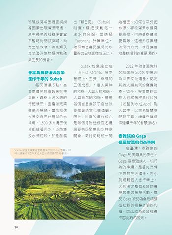 峇里島農耕灌溉哲學 「Tri Hita Karana」哲學 文組織將 Subak 制度列