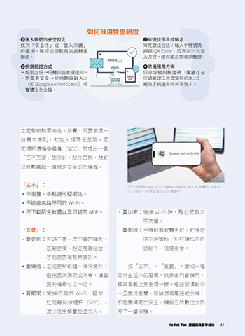 「三不」: 使用驗證器 App 如 Google Authenticator 或實體安全金鑰,