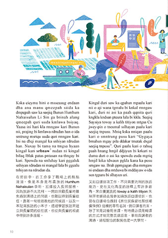 kari. Spowda na smluhay kari pggaluk hmjil kika tdwaun pgkla kana ka pusu 除了人物訪談以外,為宣傳與推動族語, 夠為節目增添新氣象,如結合影像製作節