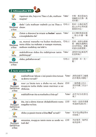 ua, munsai manasha wa hudun rinuhumin, 在地人: 是呀,被群山繚繞 itia iamin sa mashashu maqitan a akaanin, 服務生: 我們有邵族的特色