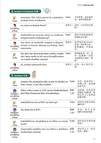 dadu! Lalu mathuaw mabrith ya isa Thau a 在地人: 對呀!拉魯在我們 ua, numa sa akaanin thuini? 服務生: 好的,今天想吃什麼