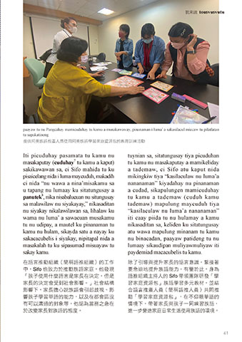 中,Sifo 也致力於推動族語家庭,他發現 要急迫地提升族語能力。有鑒於此,身為