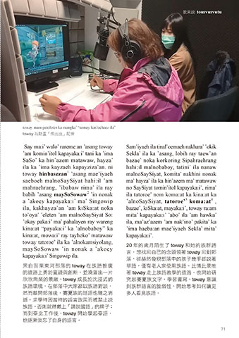 的道路上勇於實踐與創新,並澆灌出一片 著 toway 走上族語教學的道路,也開始研