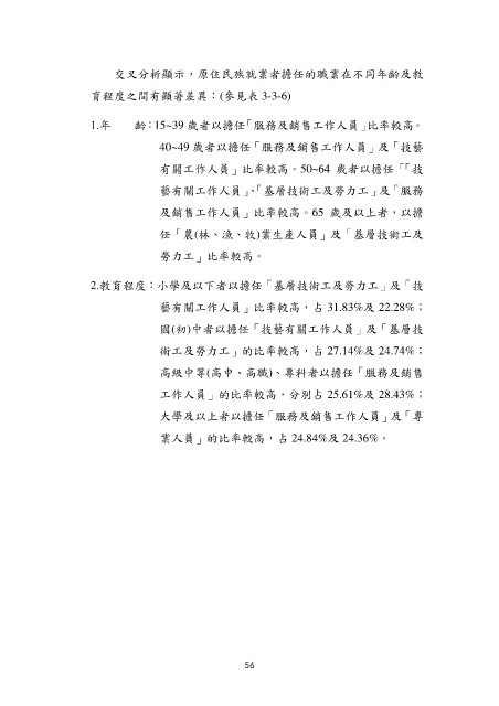 交叉分析顯示,原住民族就業者擔任的職業在不同年齡及教