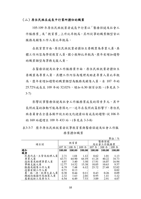 表3-3-7 歷年原住民族就業者從事教育業與醫療保健及社會工作服