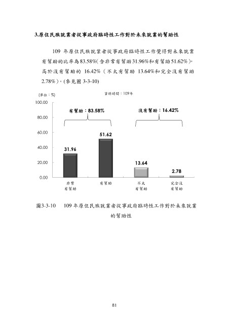 109 年原住民族就業者從事政府臨時性工作覺得對未來就業