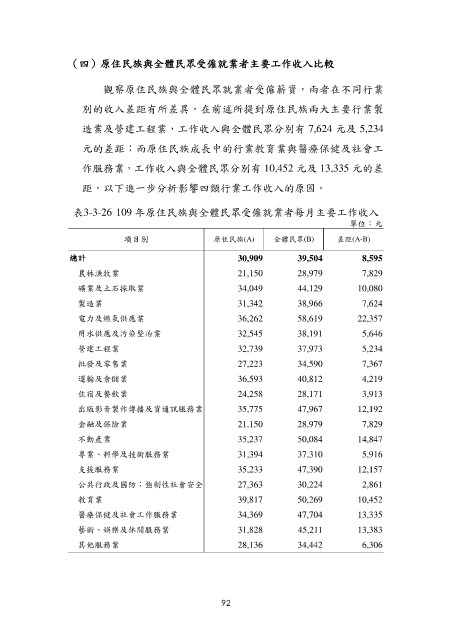 元的差距;而原住民族成長中的行業教育業與醫療保健及社會工