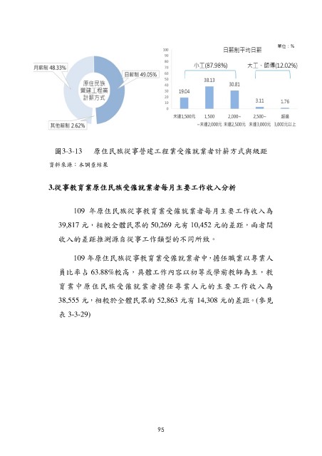 圖3-3-13 原住民族從事營建工程業受僱就業者計薪方式與級距