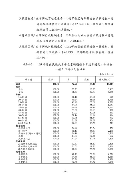 表3-4-6 109 年原住民族失業者在求職過程中有沒有遇到工作機會