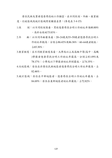 原住民族失業者想要尋找的工作類型,在不同性別、年齡、教育程