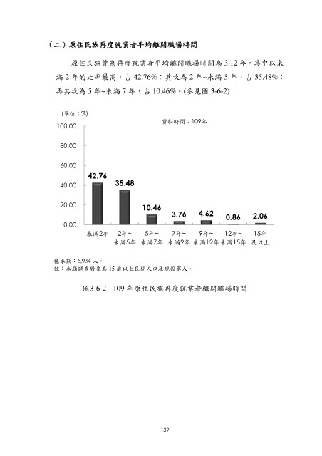(二)原住民族再度就業者平均離開職場時間