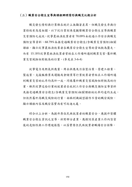 後的危險性與工作環境樣態,以落實原住民族就業者職場安全保障。